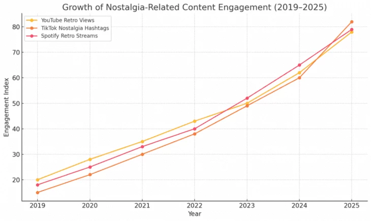Growth of nostalgia-related content engagement 2019-2025 (source: Amra & Elma)