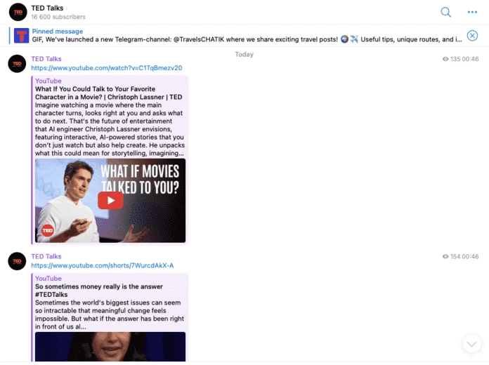 But let’s forget about those local Slavic communities for just one second, they are irrelevant right now. Here’s a fun fact for you: half of the biggest English-speaking channels you see on Telegram aren’t even official. They are fan accounts, deal hunters, content pirates, motivational-quote writers – channels with massive followings built by people who do not work for the brand at all. Netflix clips, TED Talks or random “best course ever” leaks – none of that comes from the source.